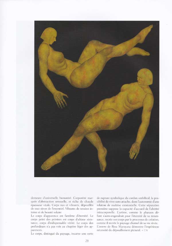 The ceremonial body is an artificial body, created from all manner of cultural scraps, imposing and dogmatic. The “Maruyanesque” body is lived, vital and inhabited. It is the home of humanity in the universe – corporeity marked by sensual abstraction, and rich in warm, vital thickness. Naked and vibrant bodies, stripped of everything except the essential. Vibrant with inner tension and solar beauty.
